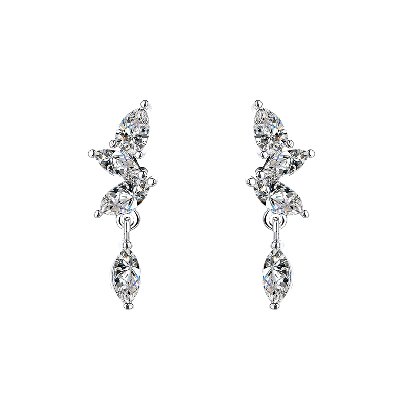 Bông tai dáng tua rua bằng đá Moissanite, trang sức bạc S925, phong cách nhỏ gọn sang trọng dành cho nữ.