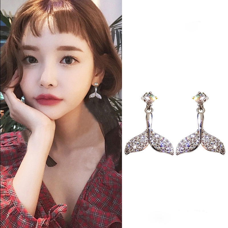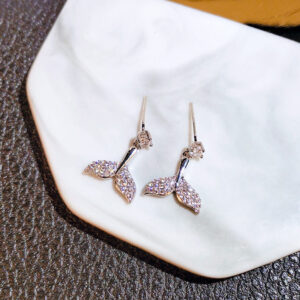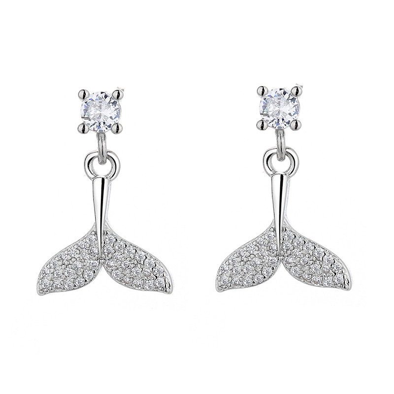 Bông tai đinh ốc hình đuôi cá bằng bạc 925, đá Moissanite cao cấp.