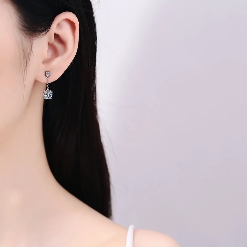 Bông tai nữ S925 bạc với đá Moissanite, thiết kế tinh tế, không phai màu, mang lại vẻ đẹp sang trọng và khí chất.