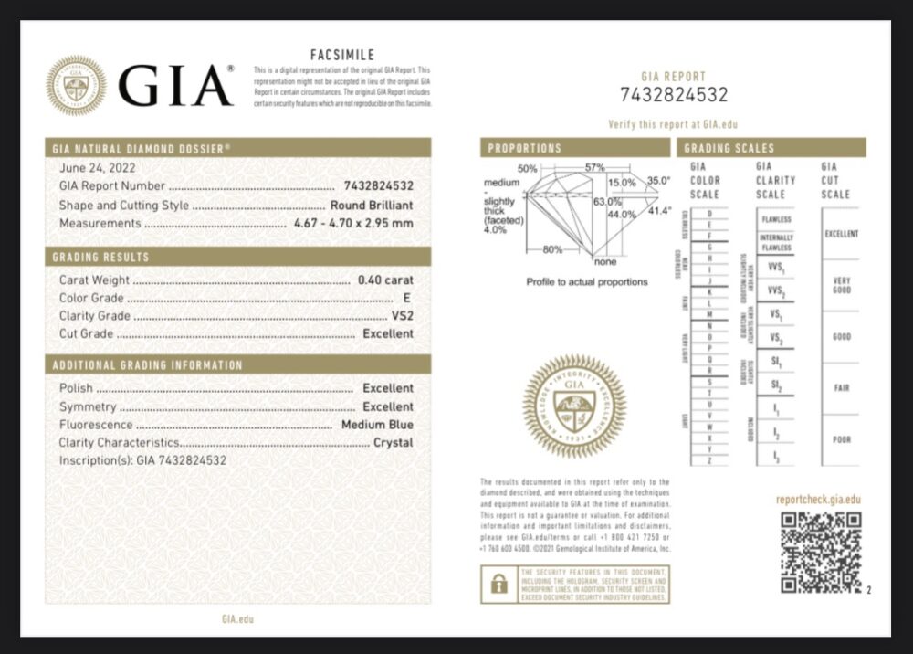 Weight (cts): Color grade: Accreditation: Dimensions (mm): Symmetry: |