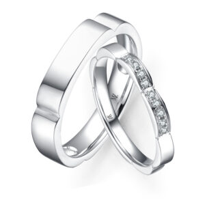 • A women’s wedding ring featuring intricate curved patterns that create an overall elegant design. The meticulously crafted details and precious stones ensure the product achieves refined elegance and sophistication.