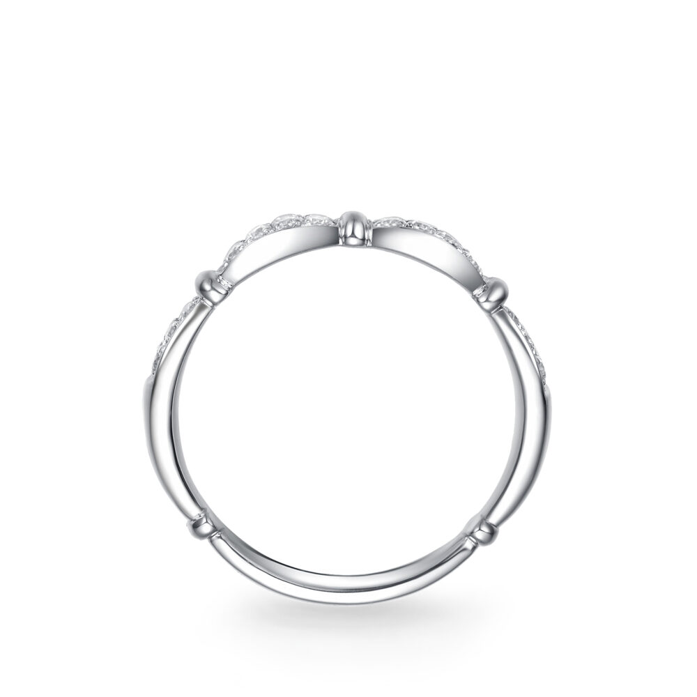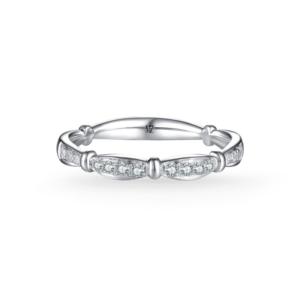 • This soft and feminine wedding ring resembles a youthful bloom. Delicate gemstone accents create a sparkling and eye-catching allure for the product.
